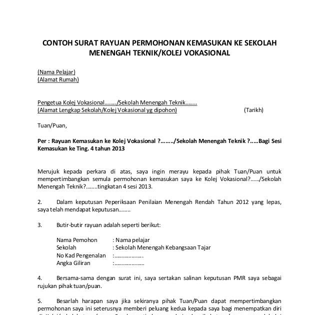 Contoh Surat Rayuan Permohonan Kemasukan Ke Sekolah  via www.slideshare.net